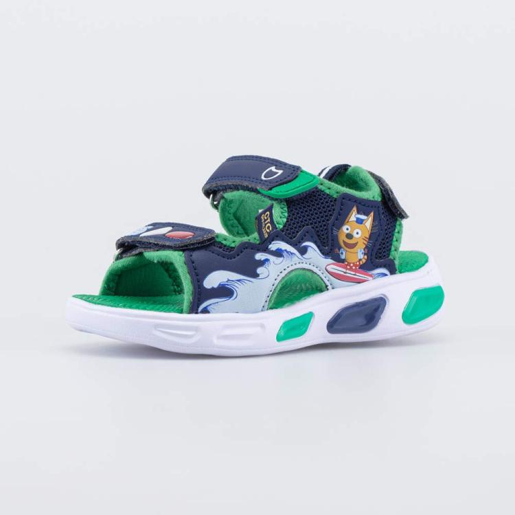 Детские пляжные сандалии со светящейся подошвой отлично дополнят летний образ мальчика. Модель максимально открытая – подходит для жаркой погоды и быстро высыхает при намокании. LED рассчитаны на полмиллиона срабатываний и горят даже под водой. Верх пляжных сандалий выполнен из сочетания текстиля и искусственной кожи и декорирован принтом в виде героя популярного мультфильма Три кота. Подкладка из гипоаллергенного и дышащего натурального хлопка дарит комфорт. Стелька из ЭВА имеет неоднородную фактуру, которая обеспечивает хорошее сцепление с влажной детской ножкой. Сандалии на липучках, которые позволяют отрегулировать обувь по подъему, а также быстро обуваться и разуваться. Легкий материал ЭВА, из которого выполнена подошва, не накаляется на солнце. Анатомически правильная внутренняя форма модели соответствует изгибам детской стопы и обеспечивает необходимую поддержку.