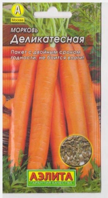 Семена в пакетах с двойным сроком годности. Высокоурожайный, среднеспелый сорт (период от всходов до уборки урожая 110-115 дней). Один из самых лучших сортов с повышенным содержанием каротина и сахаров, незаменим в диетическом и детском питании. Корнеплоды цилиндрические с тупым кончиком, длиной до 20-23 см, красно-оранжевые, с небольшой сердцевиной. Мякоть сочная, нежная, сладкая. Отличная лежкость, сохраняет питательную ценность вплоть до нового урожая. Фасовка 2г