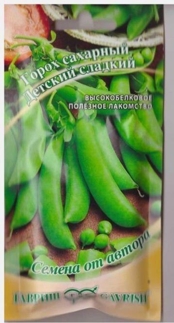 Каждый огородник желает вырастить такой горох, что послаще и покрупнее. И чтобы давал хороший урожай, мало поражался болезнями, вредителями, и созревал в нужное время. Ведь десертные лопатки с сочными семенами — это ценный диетический продукт богатый белками, сахарами, крахмалом, витаминами и каротином. Одним из таких супер сахарных сортов является Детский сладкий. Раннеспелый. Растение высотой до 80 см. Боб слабоизогнутый, с заостренной верхушкой, без пергаментного слоя, длинный, широкий. В каждом бобе завязывается 7-9 сахарных горошин. Стенки бобов толстые, мясистые, на вкус сладкие, без наличия жестких тканей. Рекомендуется для употребления недозрелых бобов в свежем виде. Урожайность 1,0-1,5 кг-м2. Посев производят ранней весной на солнечной стороне участка на глубину 4-6 см. Схема посева: 15x30 см. Растениям требуется подвязка. Фасовка 25г