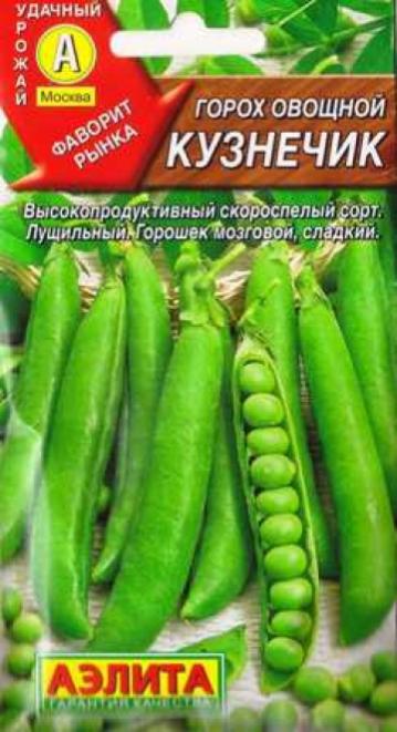 Сорт среднеспелый, мозговой. Период от полных всходов до технической спелости горошка 54-70 дней. Растения высотой 75-90 см. Боб лущильный, слабоизогнутый, с заостренной вершиной, темно-зеленый, длиной 8 см, шириной 1,3 см. Количество бобов на растении 8-15 штук. Количество семян в бобе 7-10 штук, мозговые, квадратно-сдавленные, желто-зеленые. Вкусовые качества горошка хорошие. Сорт высокоурожайный, устойчив к корневым гнилям и аскохитозу. Рекомендуется для использования в свежем виде и для консервирования.Посев проводят в конце апреля – начале мая на глубину 4-6 см. Схема посадки 30х15 см. Чтобы не допустить полегания стеблей, после всходов желательно поставить на грядке прутья-опоры длиной 1-1,2 м. Собирают урожай по мере созревания. Фасовка 10г