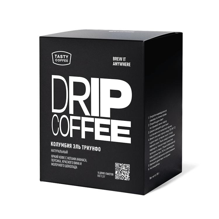 Количество дрип-пакетов в упаковке: 10 шт Количество кофе в одном дрипе: 11,5 г Срок годности: 6 месяцев с даты изготовления