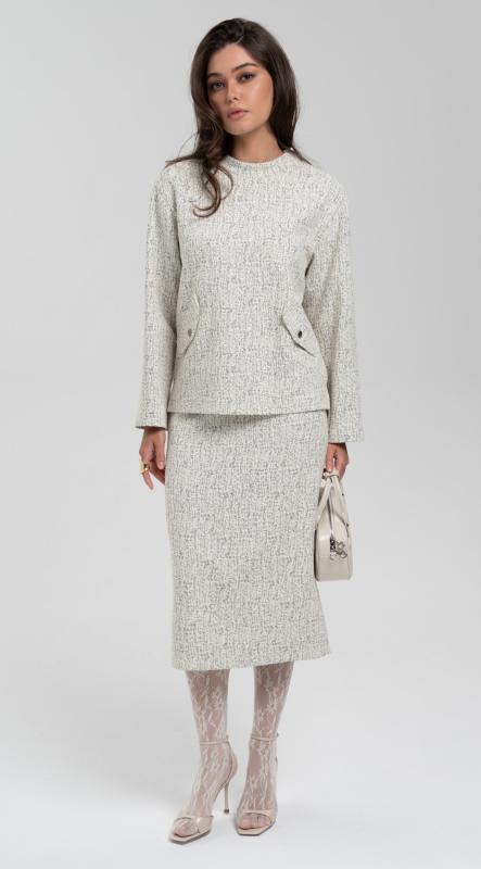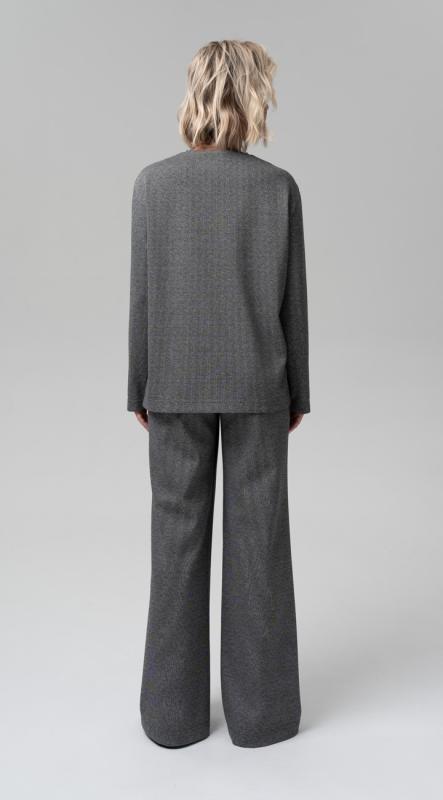Лаконичная блуза свободного кроя с разрезами по бокам из костюмного жаккарда – легко впишется в осенне-зимний гардероб и позволит создавать образы в самых разных стилях. Модель прямого кроя подходит для любого типа фигуры.