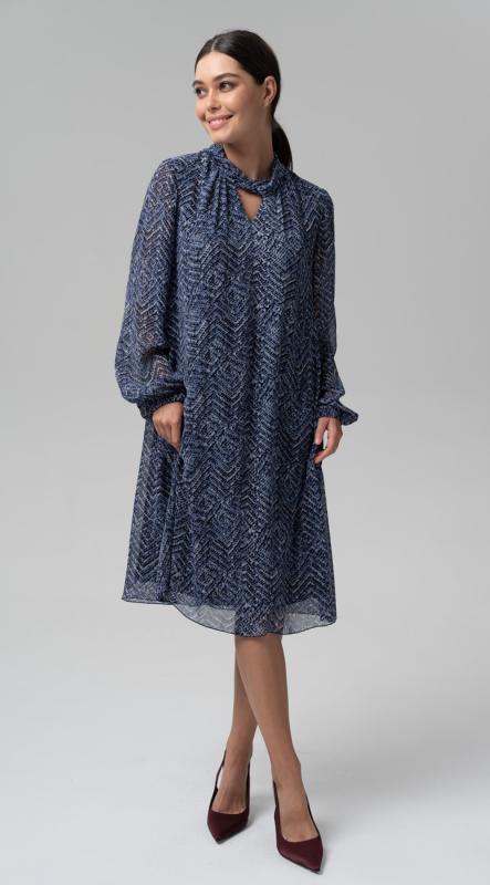 Воздушное платье А-силуэта с оригинальной стойкой мягкой формы из "