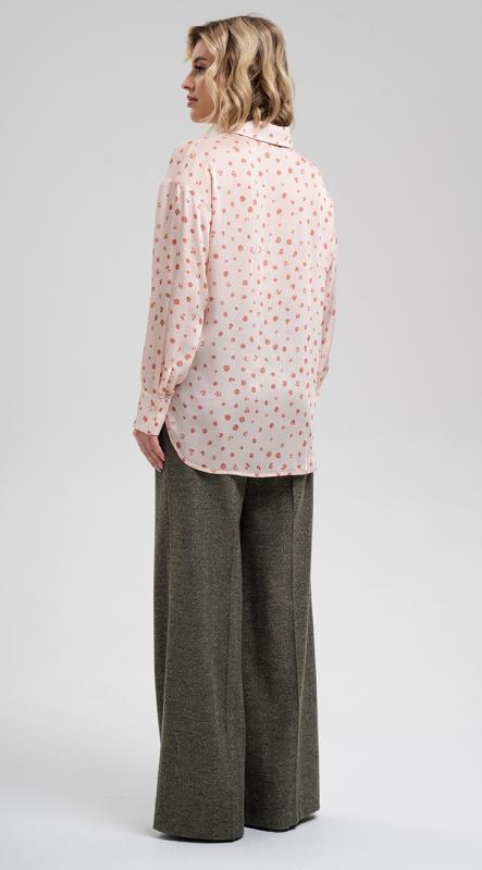 и оригинальным принтом - с легкостью впишется как в базовый гардероб, так и в праздничные или вечерние образы. Рукав полной длины на притачной манжете. Застежка на петли и пуговицы.