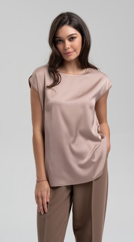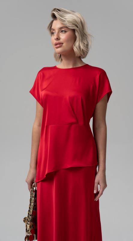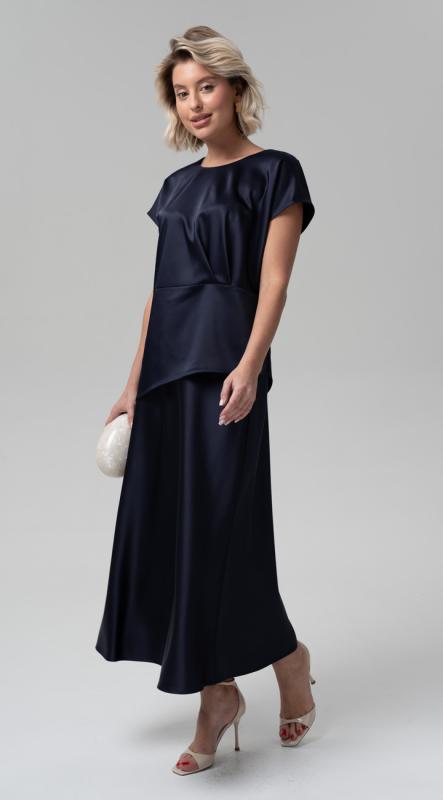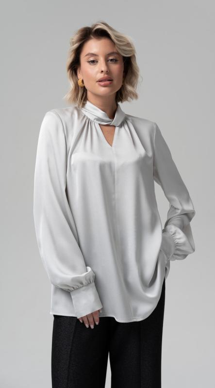 Эффектная блуза свободного силуэта с оригинальным подрезом и ассиметричным низом из премиального сатина подойдет для любого повода — от праздничного ужина до деловой встречи.