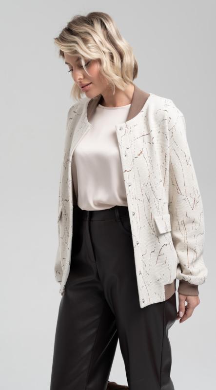 Стильный бомбер свободного кроя с декоративными клапанами и карманами из трикотажного полотна - станет отличной альтернативой при создании стильного образа CASUAL. Причиной тому служит идеальная посадка практически на любую фигуру. Рукав рубашечного кроя полной длины. Бомбер с манжетами, поясом и воротником из трикотажного кашкорсе. Застежка на потайные кнопки.