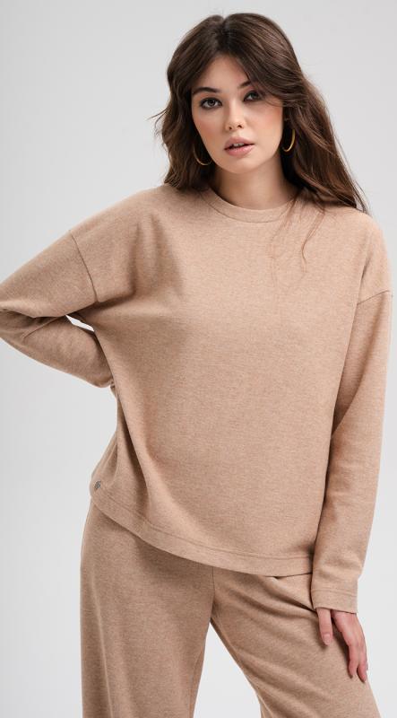 Лаконичный джемпер прямого кроя со спущенной линий плеча и длинными рукавами из трикотажного полотна - легко может стать фаворитом любого неформального гардероба.