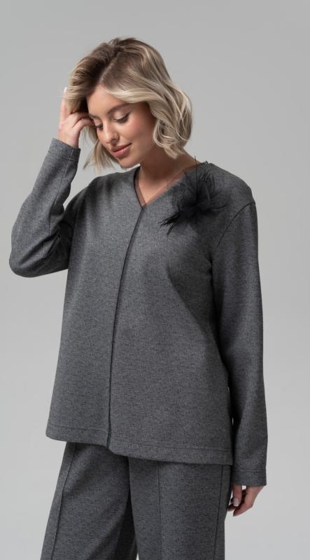 Лаконичная блуза свободного кроя с разрезами по бокам из фактурного трикотажного полотна – легко впишется в осенне-зимний гардероб и позволит создавать образы в самых разных стилях. Модель прямого кроя подходит для любого типа фигуры. Авторская брошь от OPEN FASHION подарит ее обладательнице хорошее настроение на целый день.