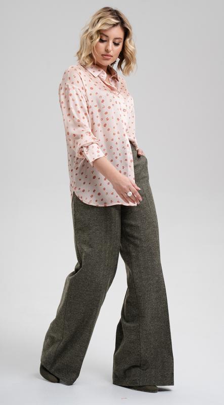 Эффектная рубашка свободного кроя с отложным воротником на стойке из струящейся ткани с эффектом "