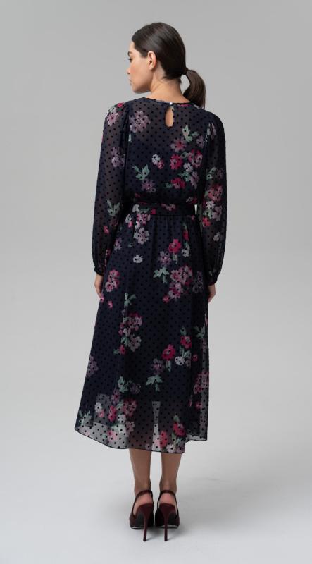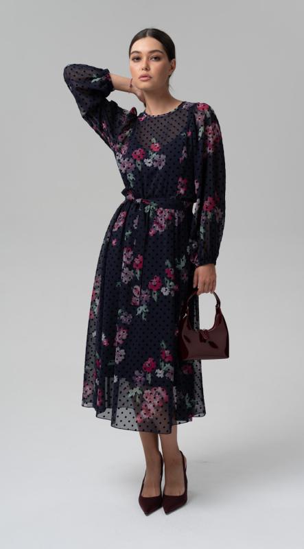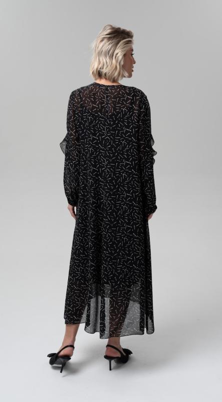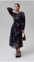 -шифона на подкладе - станет самым легким способом создать романтичный, слегка кокетливый образ. Рукав втачной полной длины на эластичной манжете. Застежка по спинке на две пуговицы и навесные петли. Платье на притачном подкладе.
