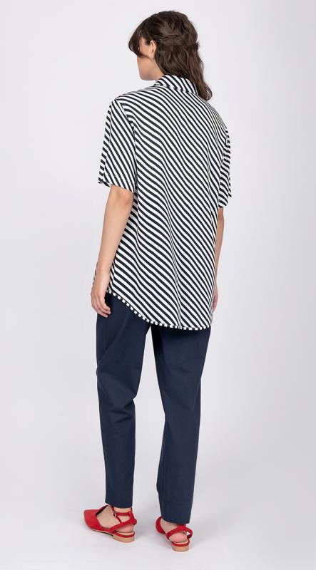 Эффектная рубашка свободного силуэта с отложным воротником на стойке из вискозы в полоску исполнена с учетом всех последних тенденций моды и прекрасно подойдет для создания образов в стиле casual. Широкий короткий рукав. Рубашку от OPEN FASHION - носите, не застегивая, поверх других вещей, как жакет. Застежка на петли и пуговицы.