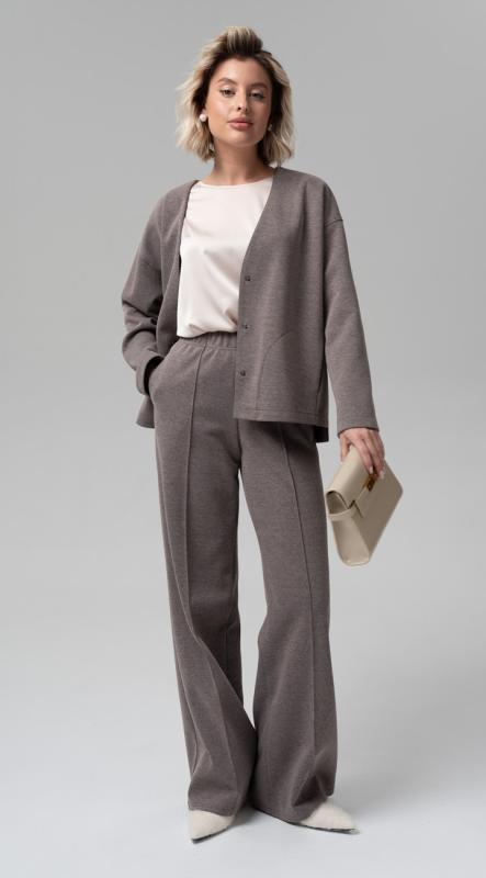 Новые удобные, не сковывающие движений прямые брюки из трикотажного полотна - незаменимый элемент сезонного гардероба. Комфортная посадка на талии, функциональные карманы, цельнокроенный пояс с резиной - делают брюки идеальными для любой фигуры. Имитация стрелки на передней половинке брюк визуально удлиняют ноги.