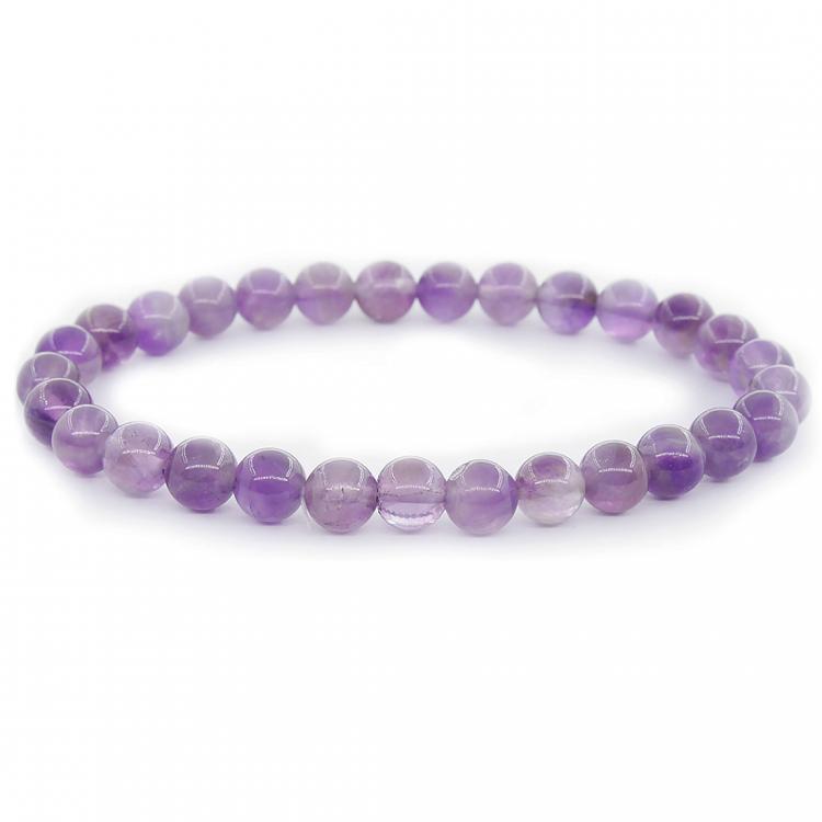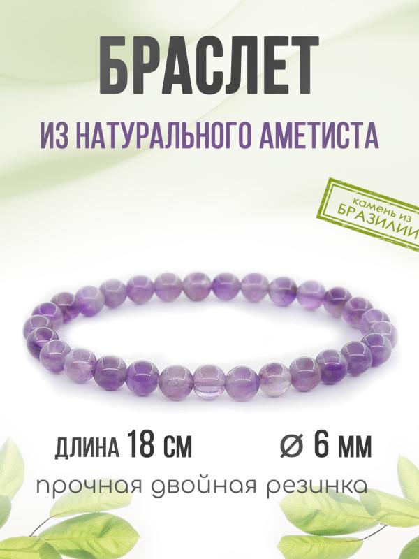 Утончённый браслет из мелких бусин натурального аметиста на резинке. Диаметр шарика 6мм. Длина украшения 17см.