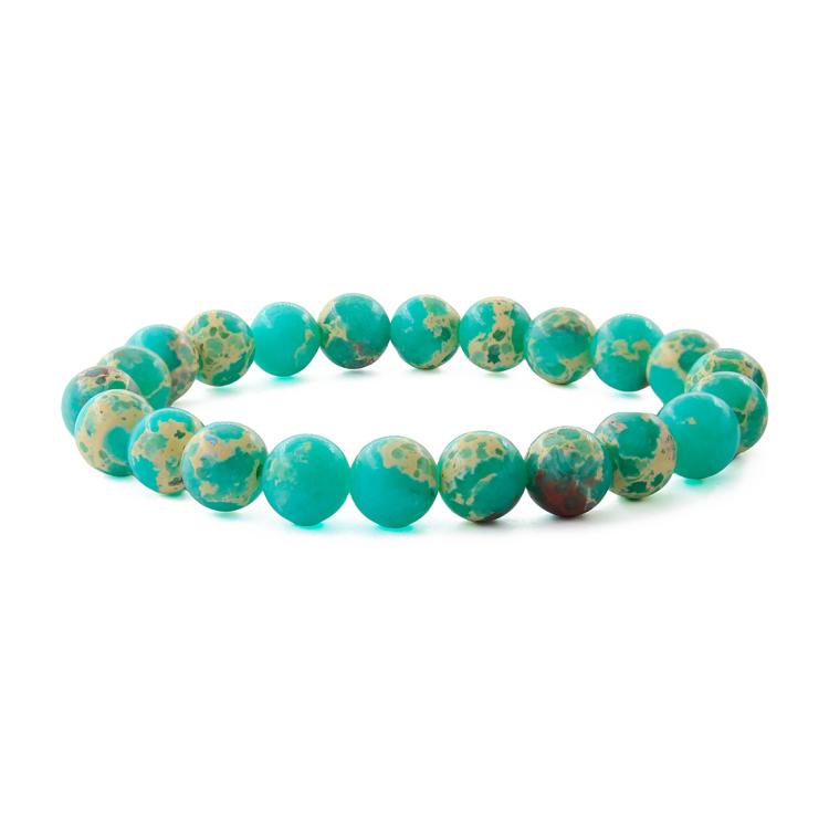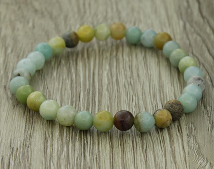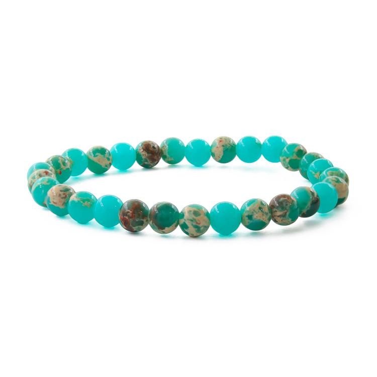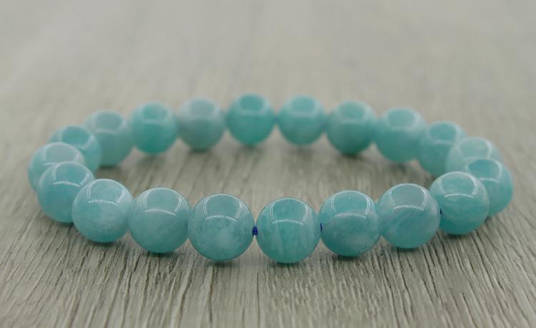 Браслет из натурального амазонита на резинке. Диаметр шарика 6мм. Длина украшения 17см.