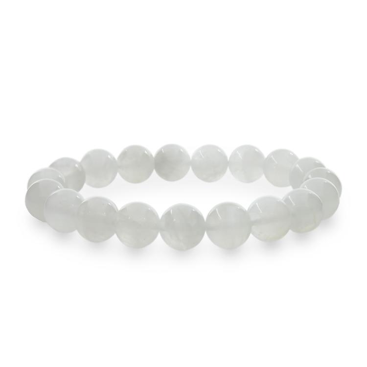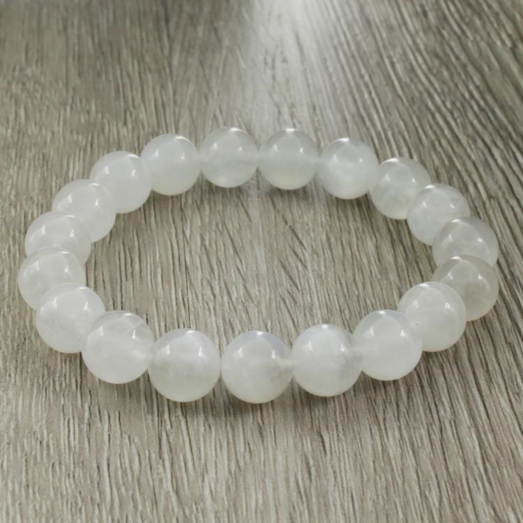 Стильный браслет из натурального прозрачного лунного камня дополнит Ваш повседневный или праздничный образ. Диаметр бусин 10мм. Длина браслета 17см.