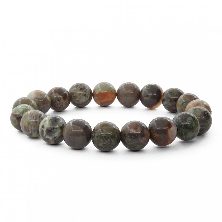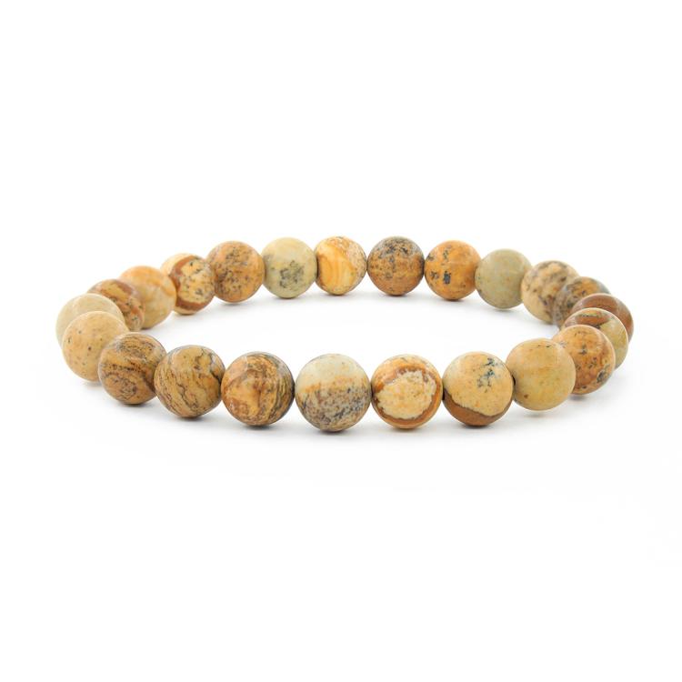 Браслет выполнен из в натуральной древесной яшмы на резинке. Диаметр бусины 8мм. Длина 17см.