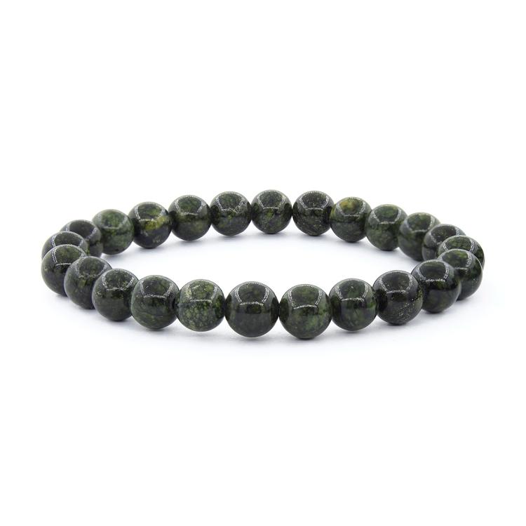 Классический браслет-шарики из зеленого змеевика. Диаметр бусин 8мм. Длина украшения 17см.