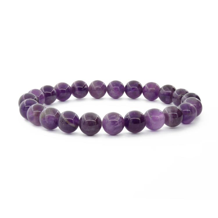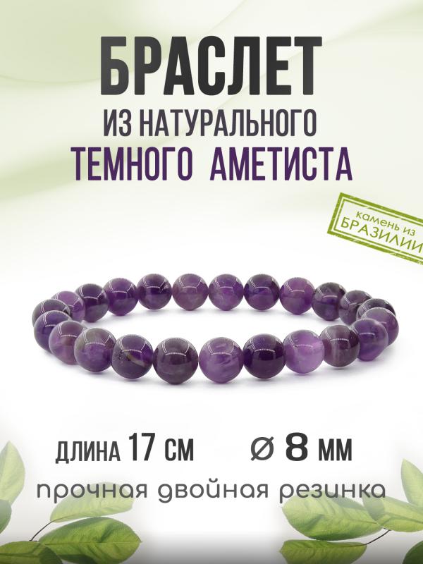 Браслет из натурального аметиста на резинке. В данном браслете аметист очень тёмный. Диаметр бусины 8мм. Длина 17см.