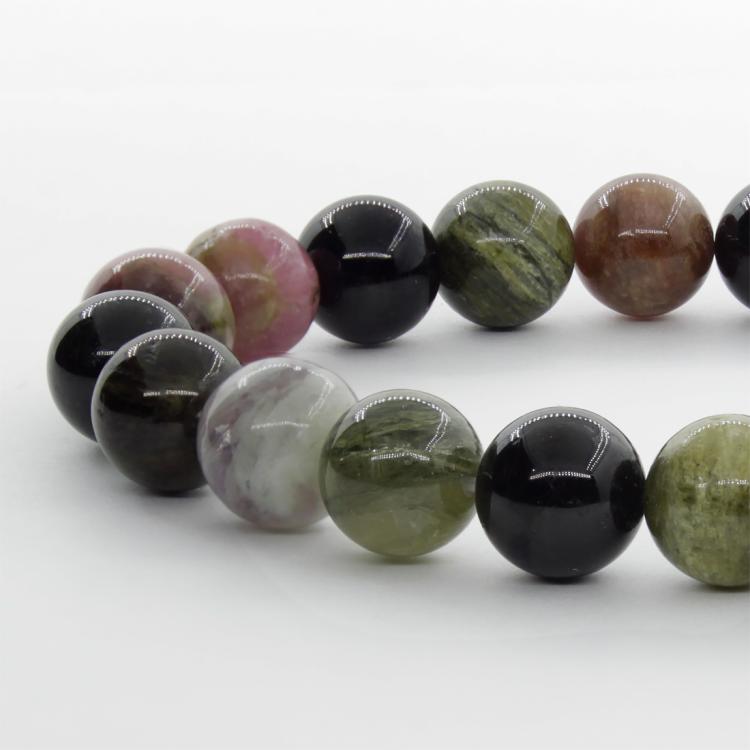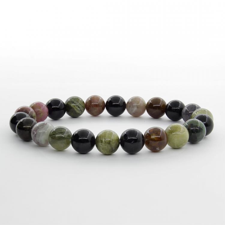 Этот браслет сделан из натурального турмалина. Хорошо отполированные бусины турмалина блестят каждый своим цветом. Браслет на резинке. Диаметр бусин 9мм. Длина браслета 18см.