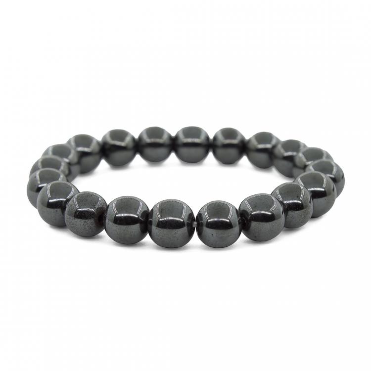 Браслет выполнен из натурального гематита. Браслет на резинке. Диаметр бусины 10мм. Длина 17см.
