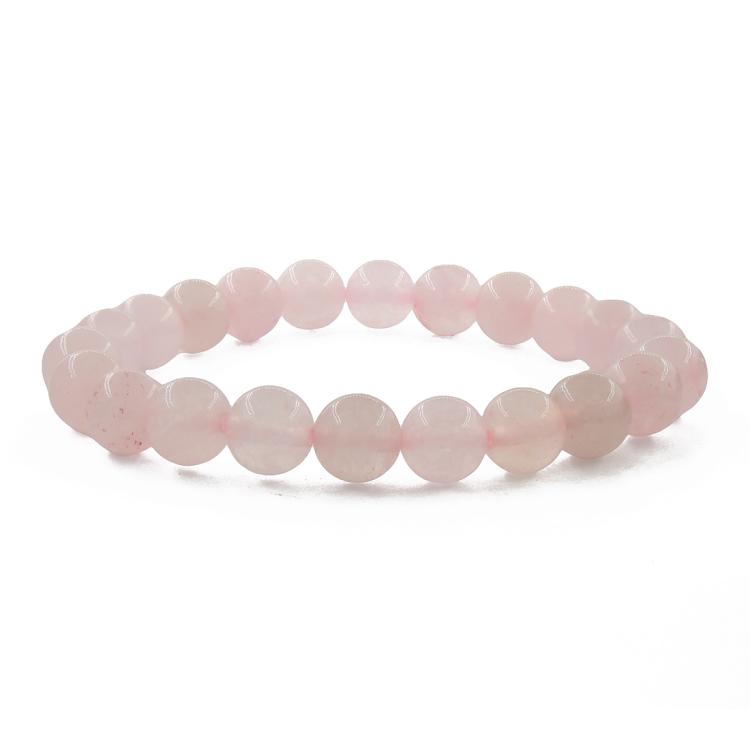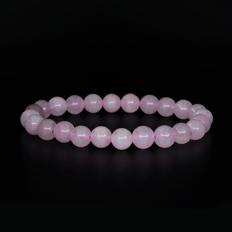 Браслет выполнен из натурального розового кварца. Браслет на резинке. Диаметр бусины 8мм. Длина украшения 16см.