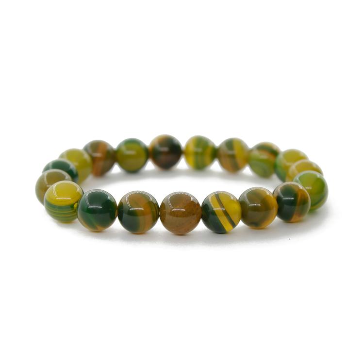 Этот браслет сделан из шариков натурального зелено-желтого агата. Браслет на резинке. Диаметр шарика 10мм. Длина 17см.