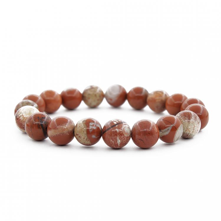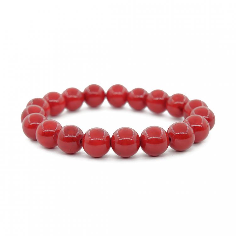 Браслет выполнен из натуральной красной яшмы. Браслет на резинке. Диаметр бусин 10мм. Длина украшения 16см.