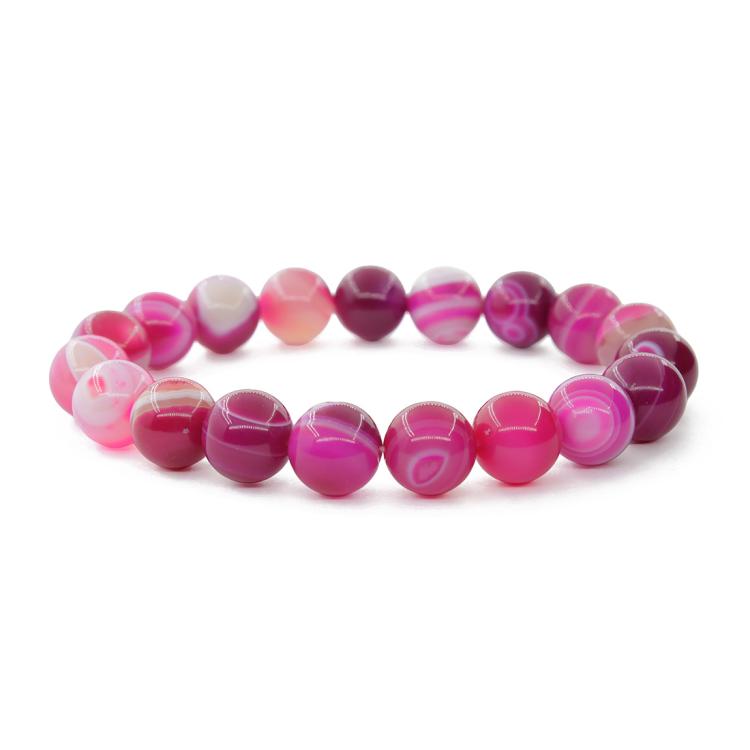 Браслет выполнен из шариков натурального малинового агата на резинке. Диаметр шарика 10мм. Длина 17см.