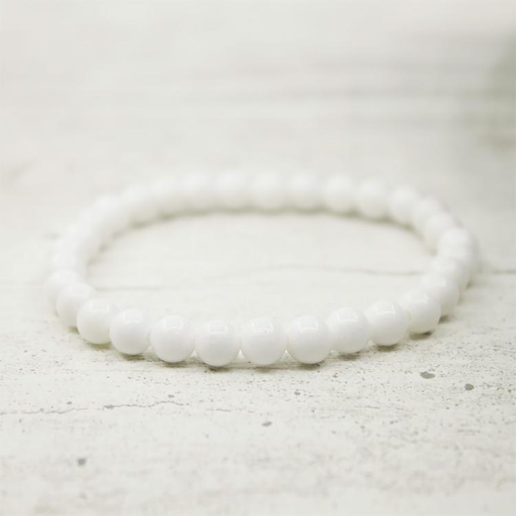 Браслет из натурального кальцита, называемого белым агатом. Браслет на резинке. Диаметр шарика 6мм. Длина 17см.