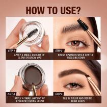 Этот уникальный восковой гель для бровей мгновенно подтягивает, лепит и ухаживает за всеми волосами бровей, обеспечивая прозрачное естественное покрытие, которое прекрасно смотрится на всех тонах кожи и цветах бровей. Сочетает в себе два продукта: воск для бровей и крем для бровей. Водонепроницаемый и устойчивый к пятнам, обеспечивает долговременное удержание на месте в течение всего дня. Поднимает брови, делает их 3D естественными и плотными. Обладает мягкой кремовой текстурой, высокой пигментацией, быстрым высыханием, комфортным носком и долговечностью. 【Восковая помада для бровей 2 в 1】Уникальная конструкция позволяет использовать два различных продукта в одной банке, что обеспечивает легкое и беспроблемное нанесение, стойкую фиксацию и приподнятые пушистые брови, которые сохраняются на месте весь день. 【Сильно окрашенный】Суперпигментированная формула позволяет легко растушевывать продукт, просто удалив небольшое количество с помощью прилагаемой кисти, чтобы создать идеальный цвет и текстуру бровей. 【Стой