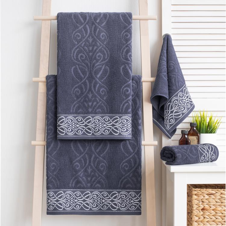 Коллекция Толедо — это красивые приглушенные цвета, приятная палитра с изящным рисунком-орнаментом. Натуральная ткань из 100% хлопка. При её создании пряжа проходит дополнительный этап расчесывания волокон, в результате получается мягкое и нежное махровое полотно, которое отлично впитывает влагу. При производстве используются стойкие красители: они безопасны для здоровья и сохраняют яркость цвета даже после многократных стирок.
